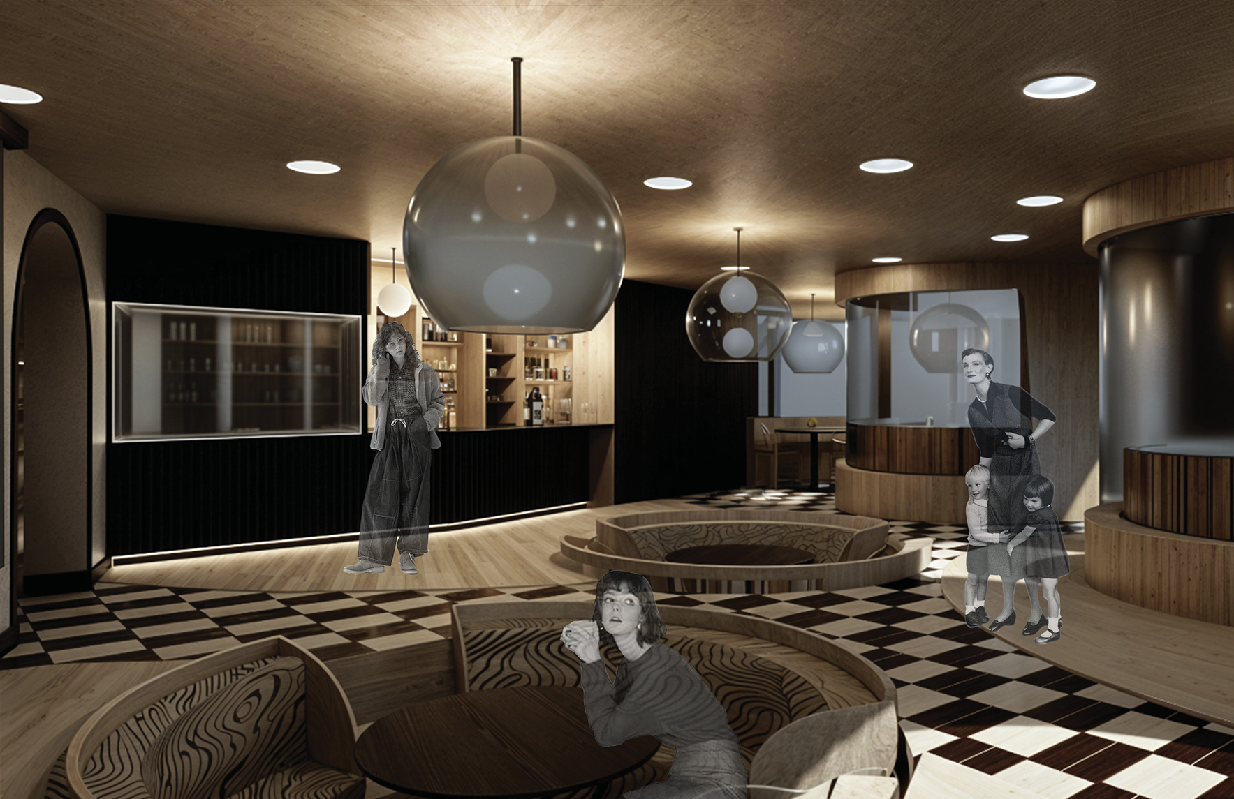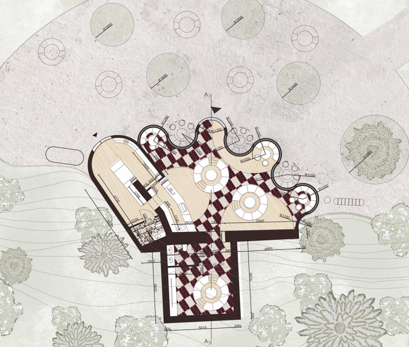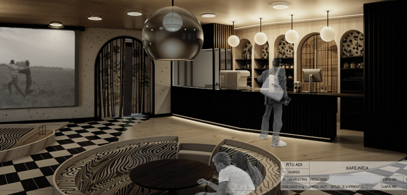 Šī kafejnīca ir veidota kā daudzfunkcionāla, uz sabiedrību un mākslu vērsta telpa, kas kalpo ne vien kā dzērienu un auksto uzkodu bārs, bet arī kā kino, radošo darbnīcu un radošās kopienas aktivitāšu centrs. Tā atrodas Arkādijas parkā Rīgā, integrējoties esošajā reljefā, — daļēji iebūvēta kalnā, veidojot saikni starp dabu, mākslu un arhitektūru. Tas forma iedvesmojusies no Mārupītes mestajiem līkločiem, radot plūstošu, līganu formu, kas dabiski vada skatienu gan uz iekštelpu ekrānu, gan uz dabas ainavu ārpusē.
